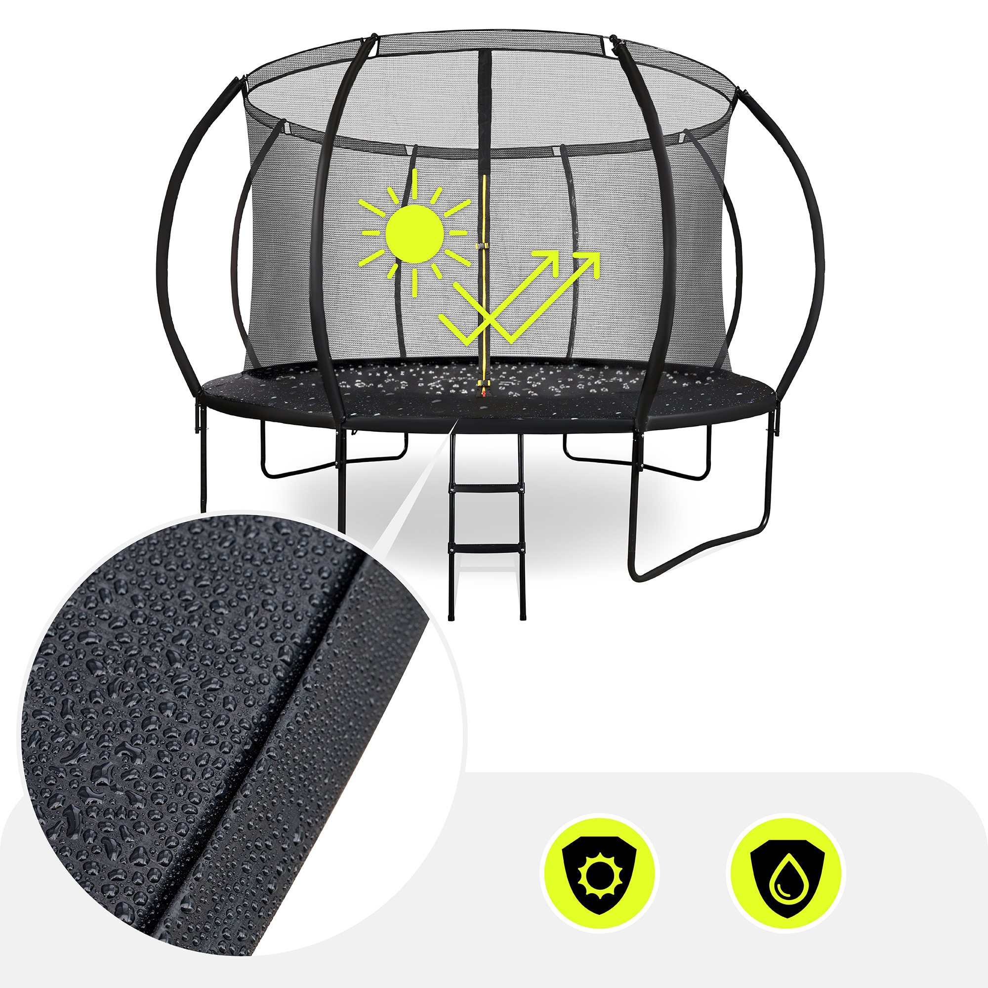 Trampolino da giardino XXL per bambini HyperMotion - 366 cm 12FT - con scala e rete interna - per casa e giardino - 150 kg max