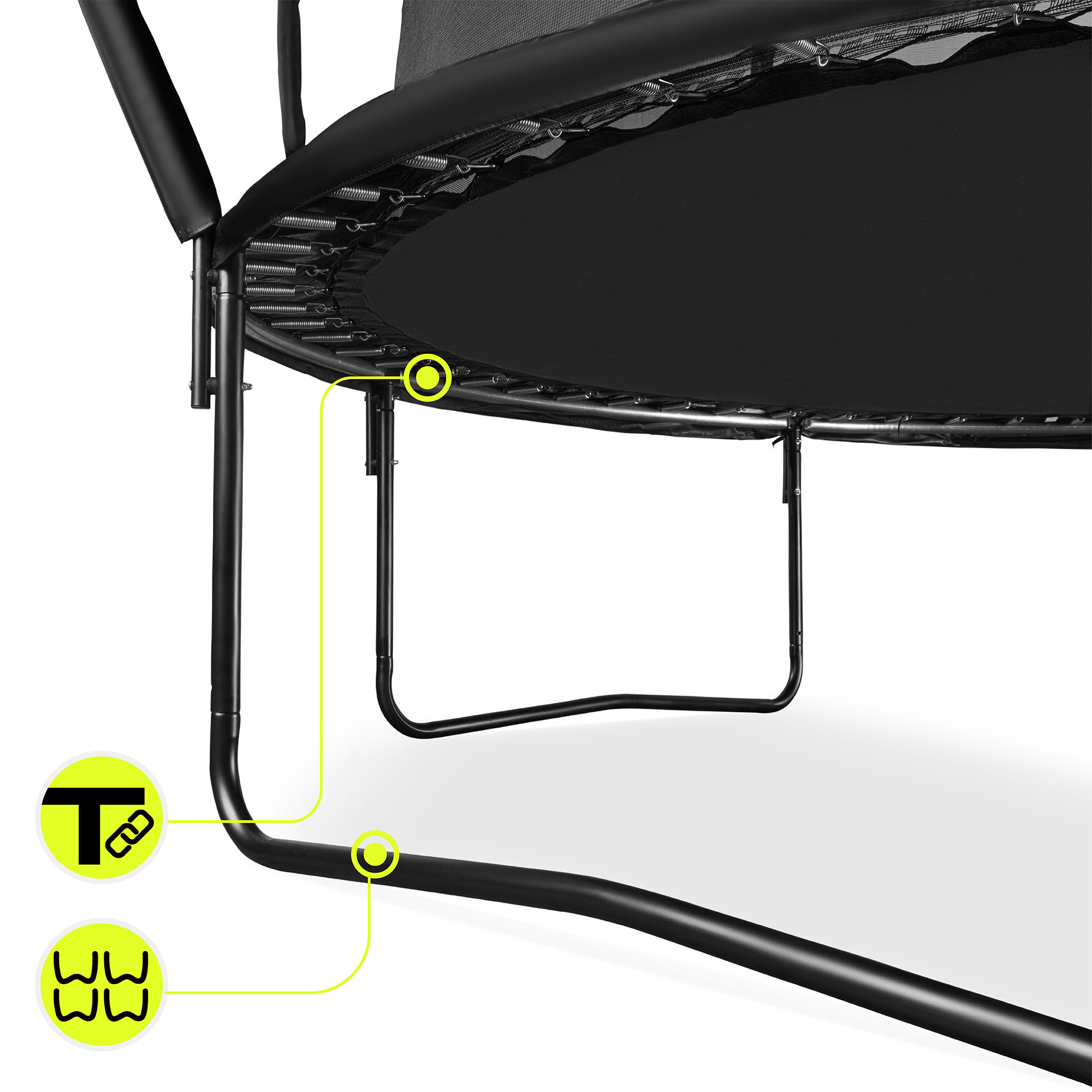 Il trampolino è stato progettato e prodotto in base agli attuali requisiti di sicurezza. Conforme alla norma EN71-14: 2018. La resistente rete interna protegge i bambini dalle cadute e la costruzione solida garantisce stabilità.