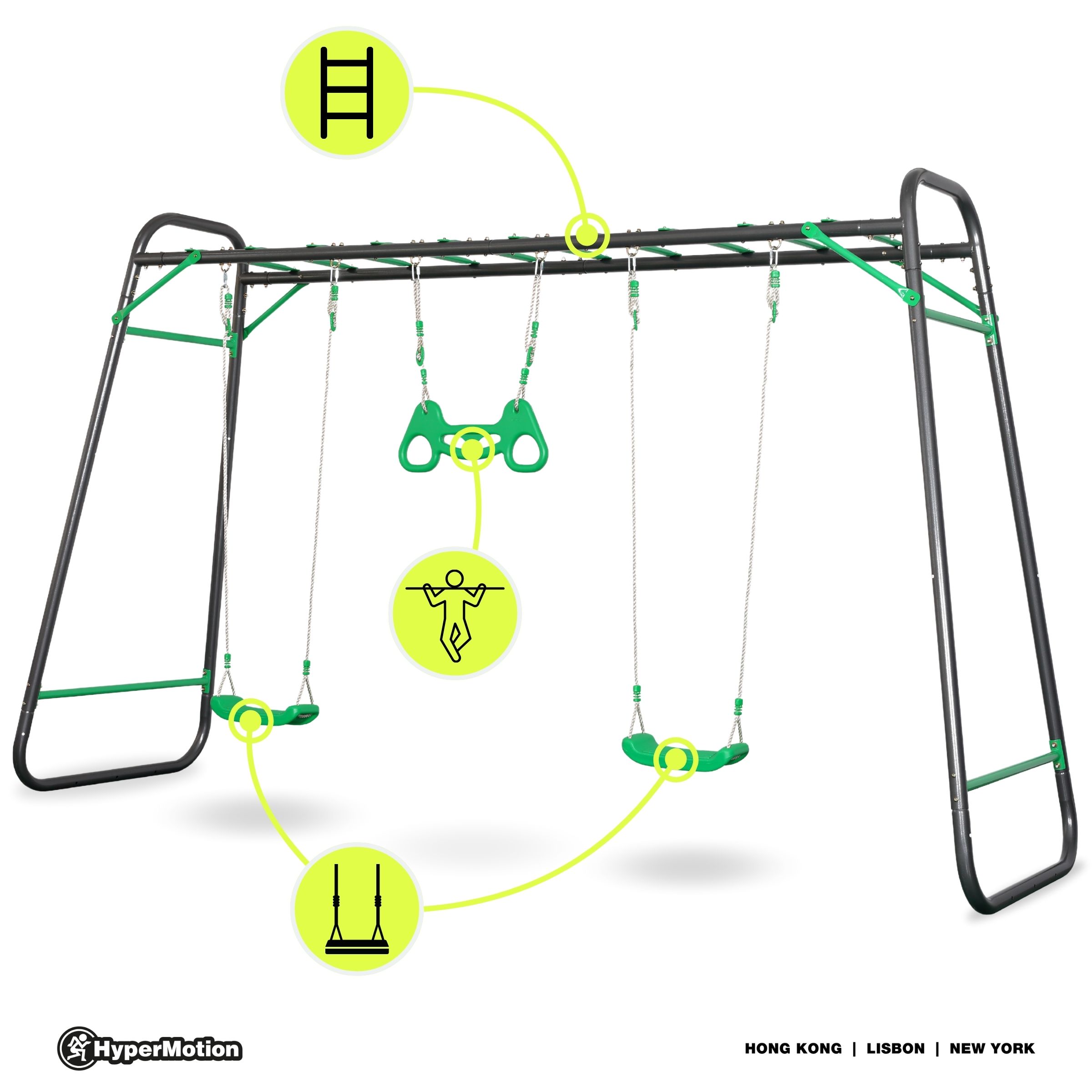 Altalena da giardino XXL in acciaio - 2 sedili, scala, trapezio ginnico