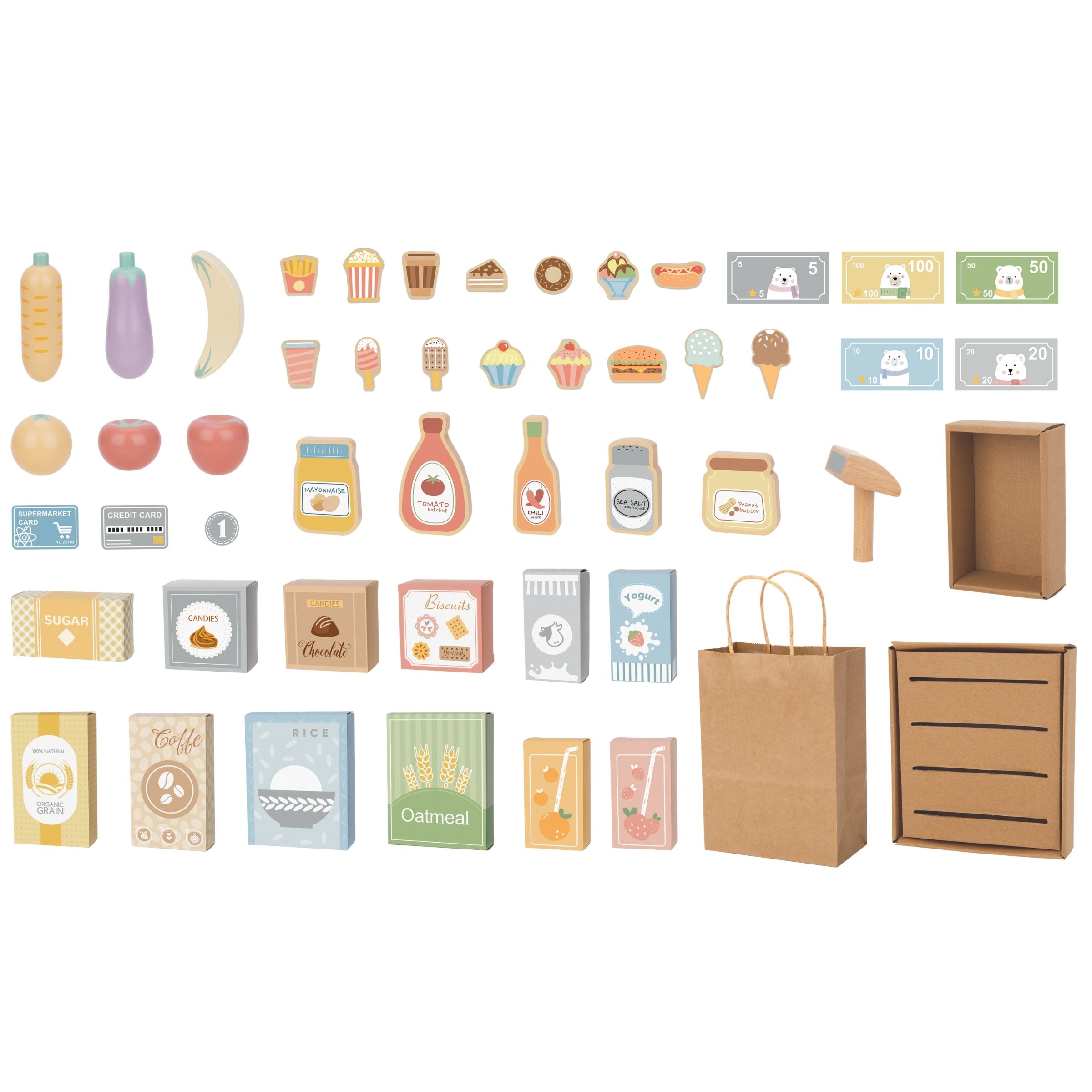 Numerosi scaffali per esporre la merce permettono al piccolo negoziante di ordinare i prodotti e di disporli comodamente. Grazie al robusto supporto e all'ampia dotazione della bancarella in legno, il bambino può assumere il ruolo di negoziante o di cliente e offrire un divertimento unico e creativo.