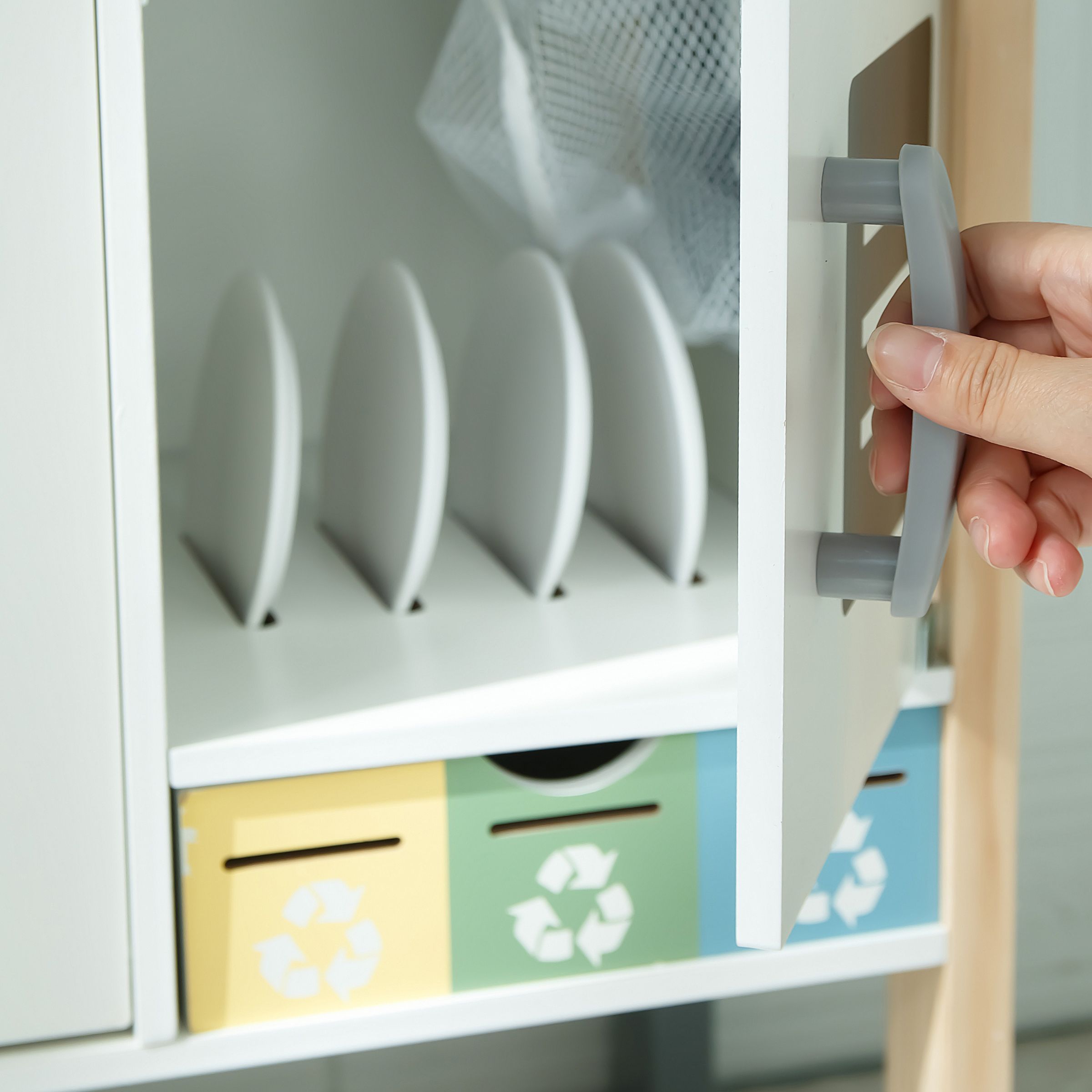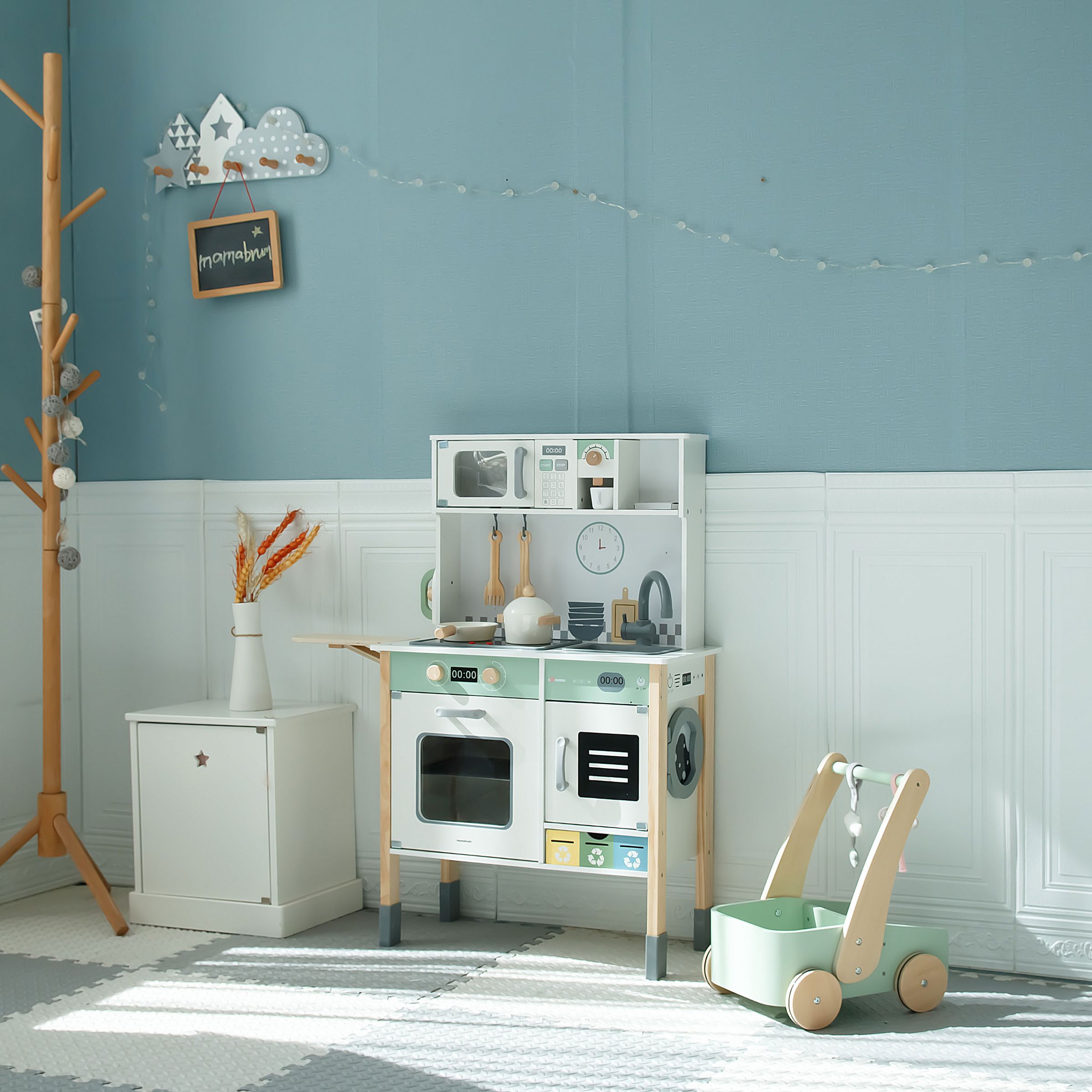 La cucina in legno con lavatrice e lavastoviglie permette ai bambini di provare la gioia di fare i lavori domestici. I bambini più piccoli possono assumere il ruolo di genitori che si prendono cura della casa, rafforzando il senso di indipendenza e la fiducia in se stessi. È una ricetta per un divertimento coinvolgente non solo da soli, ma anche con i loro coetanei.