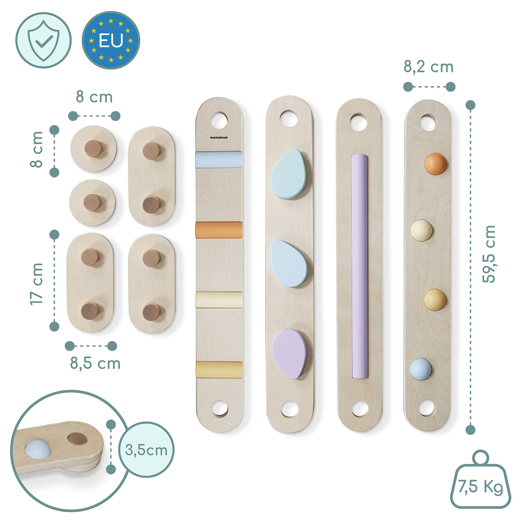 - Grandi travi con una lunghezza fino a 59,5 cm, per offrire al bambino una superficie stabile e sicura su cui esercitarsi