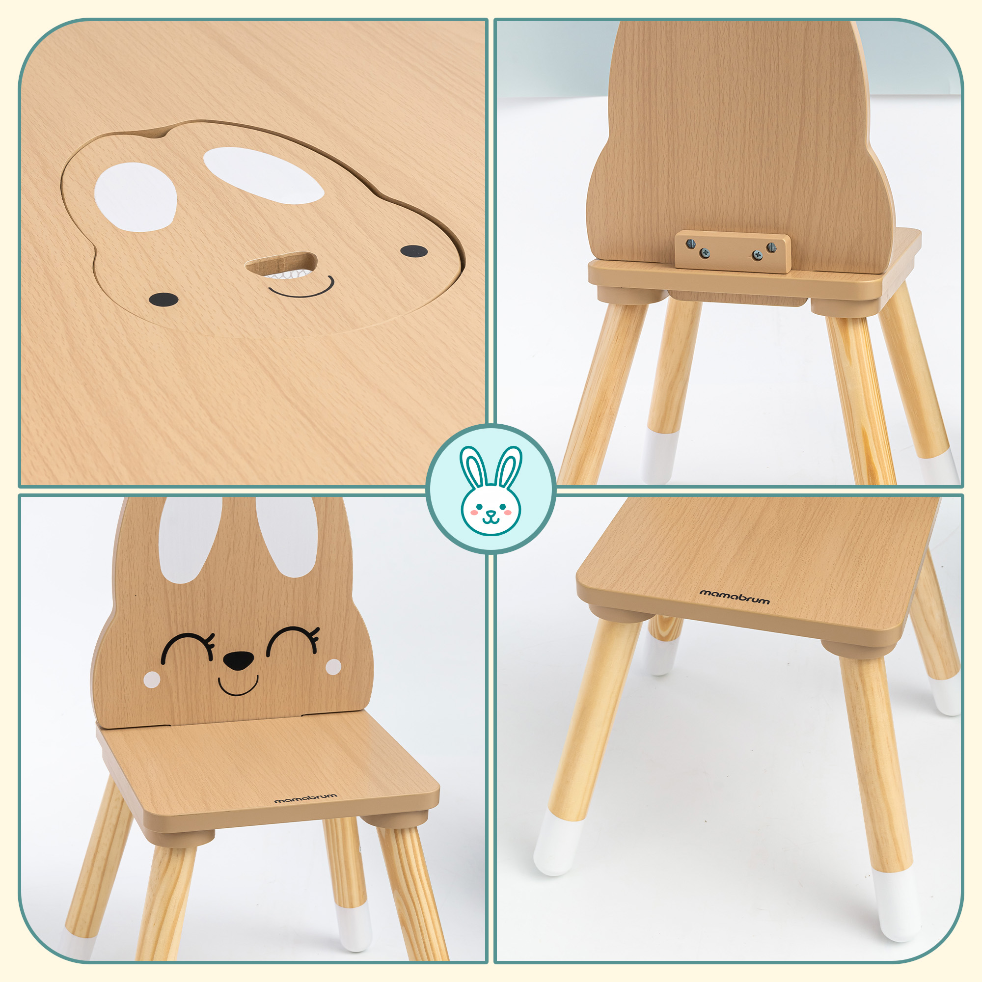 - Adorabile design a forma di coniglietto : schienali delle sedie a forma di orecchie e piano del tavolo con l'immagine di un coniglietto