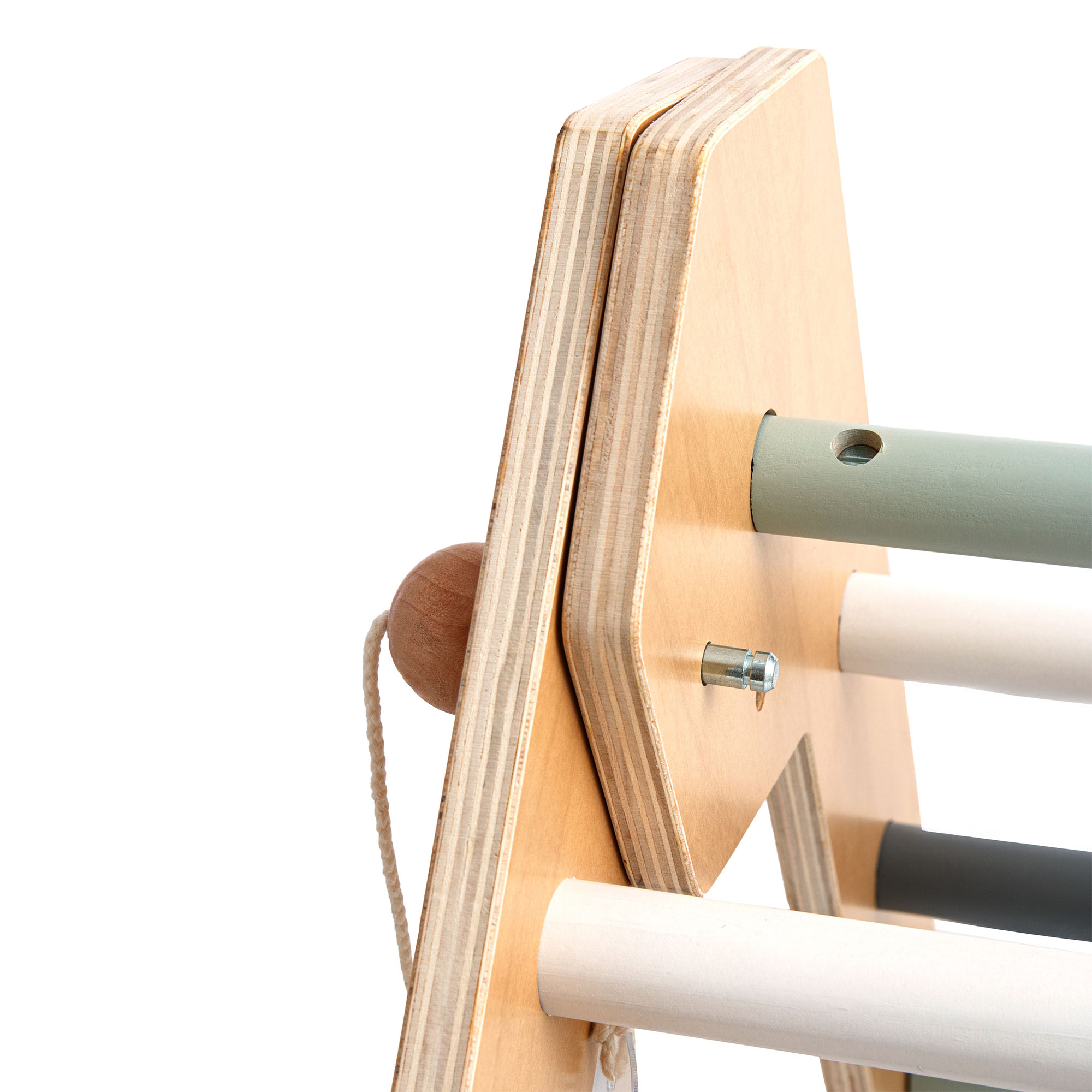 La struttura stabile favorisce l'arrampicata, l'equilibrio e lo sviluppo muscolare di tutto il corpo. I lati pieghevoli rendono il triangolo facile da riporre o trasportare, una caratteristica apprezzata dai genitori con spazi limitati. Questo è un elemento classico del metodo Montessori, che supporta lo sviluppo motorio e l'indipendenza del bambino.