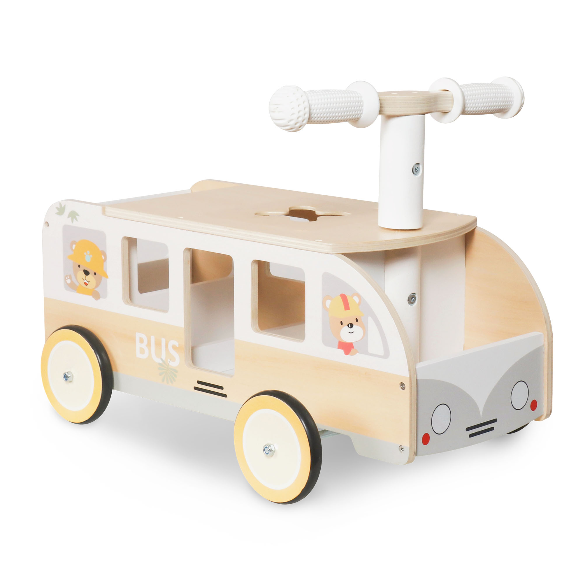 Autobus in legno per bambini - Autobus con vani portaoggetti e spazio per animali di peluche