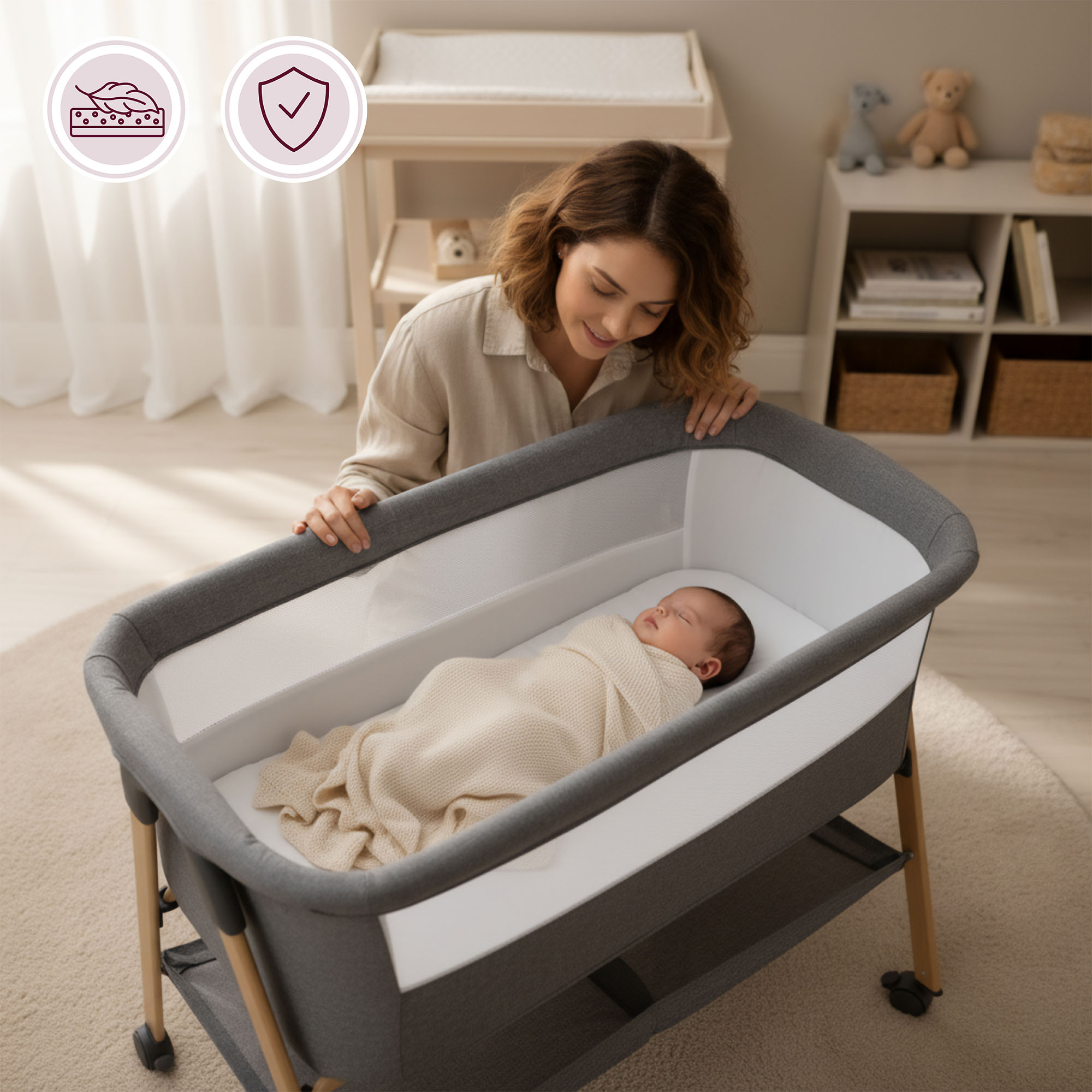 La culla è stata sottoposta a rigorosi test di stabilità, qualità dei materiali e sicurezza strutturale. Questo significa che puoi essere certo che il tuo bambino riposerà in un ambiente progettato secondo i più elevati standard di protezione e comfort.