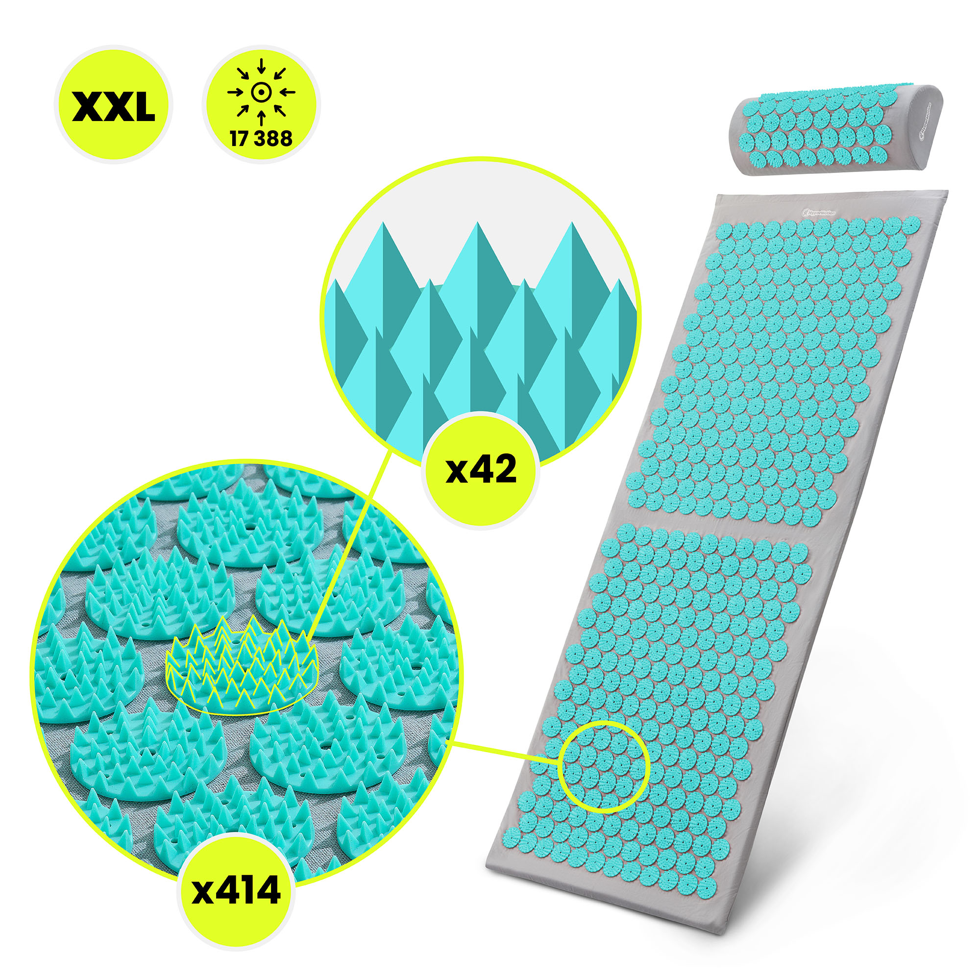 Tappetino per agopressione grande con cuscino e fodera - 130 cm HyperMotion grigio-menta