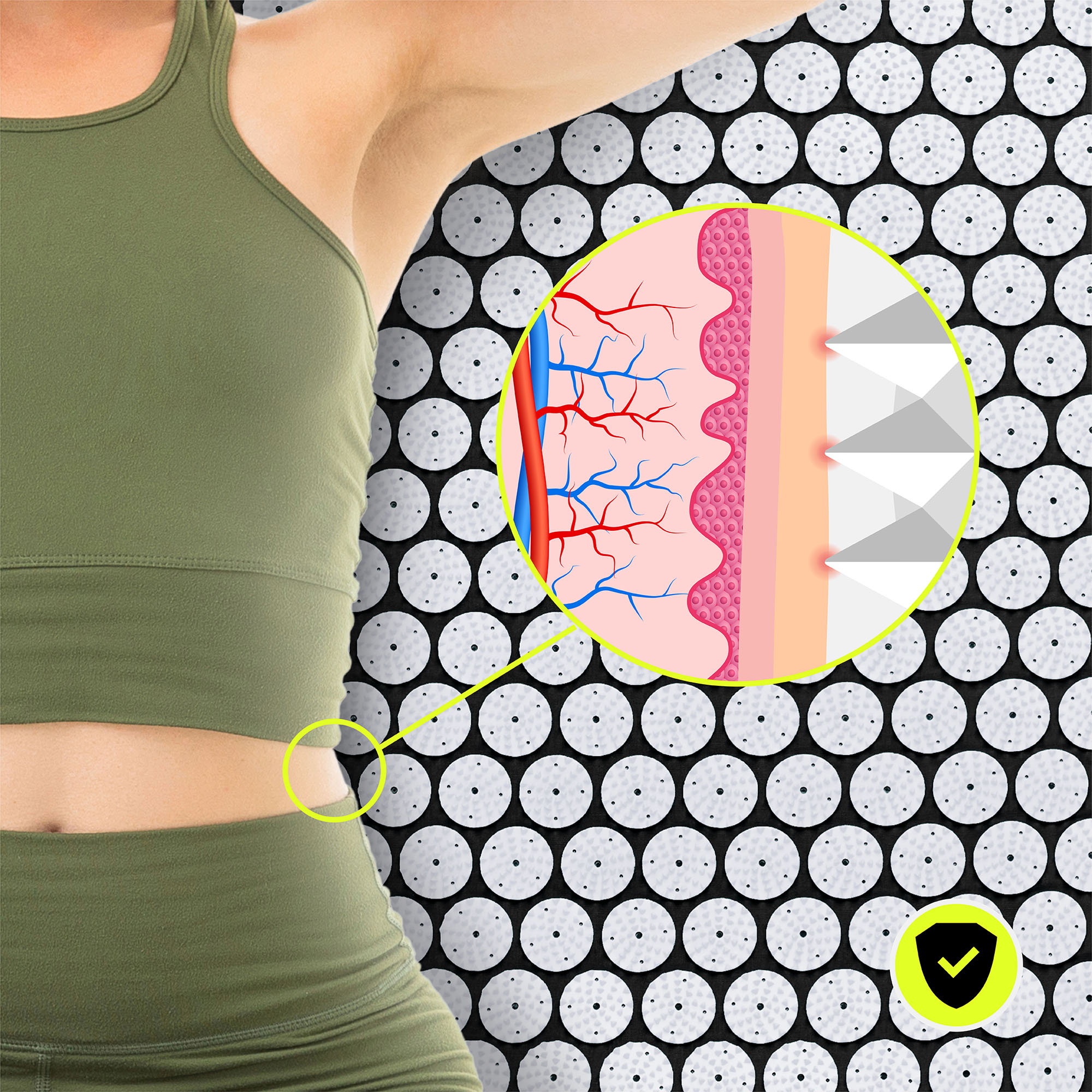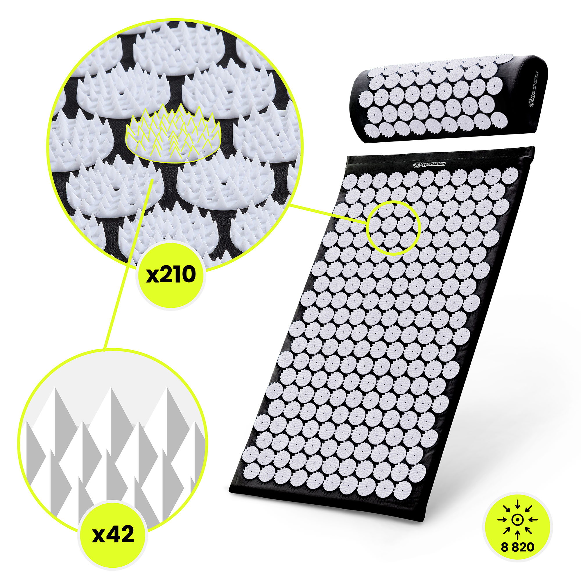 - 8.820 punti di pressione , ovvero 210 rosette con 42 punte ciascuna, garantiscono un impatto uniforme e percepibile su tutta la superficie del tappetino.