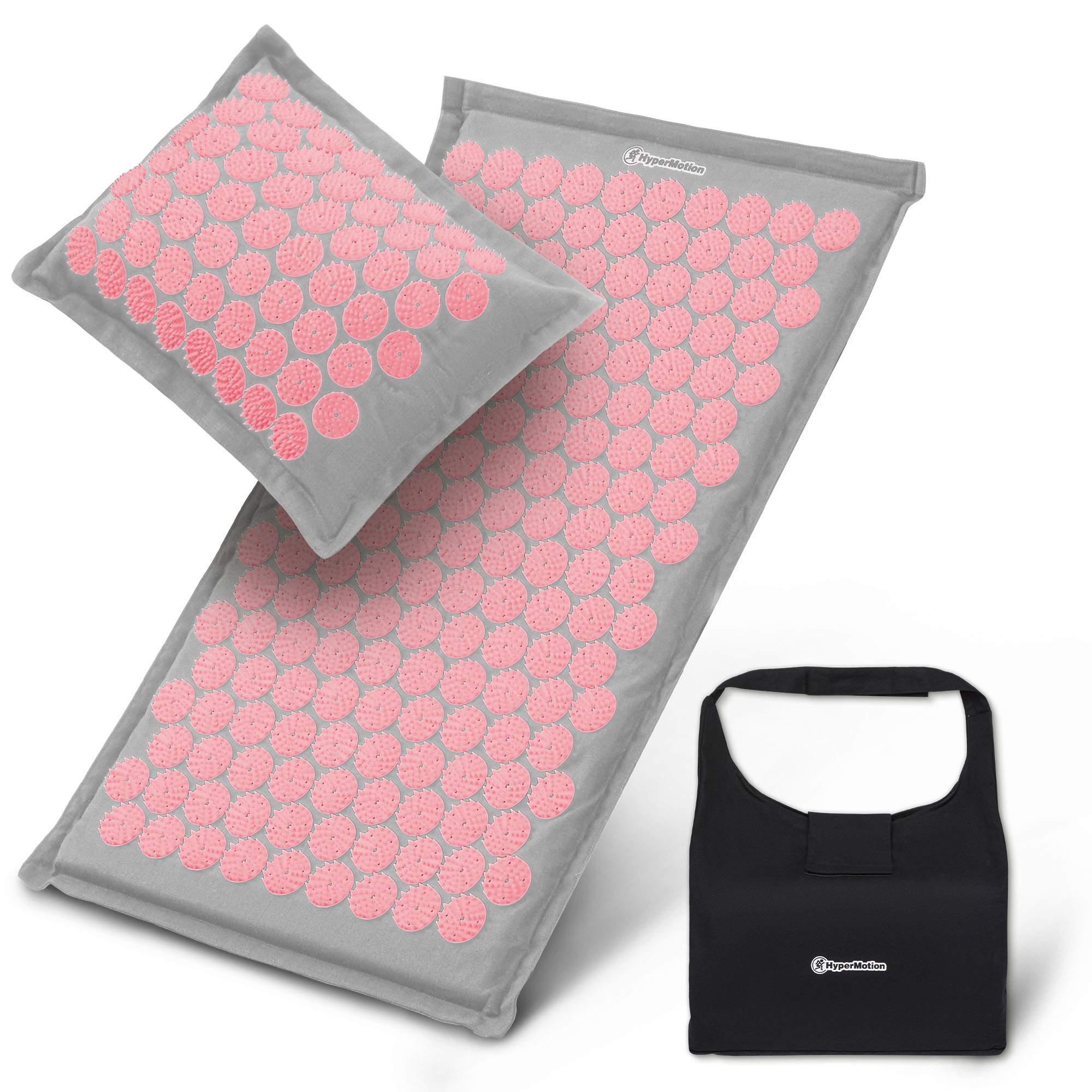 Tappetino per agopressione in lino ecologico con cuscino in fibra di cocco e grano saraceno – 68 cm HyperMotion grigio e rosa